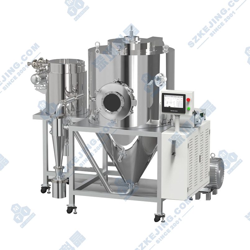 应用范围:MSK-DZF-15-5L-S 喷雾干燥机主要适用于高校、研究所和食品医药化工企业实验室生产颗粒粉末,对所有溶液如乳浊液、悬浮液具有广谱适用性,适用于对热敏感性物的干燥如生物制品、生物农药、酶制剂等,因所喷出的物料只是在喷成雾状大小颗粒时才受到高温,故只是瞬间受热,能保持这些活性材料在干燥后仍维持其活性成份不受破坏。