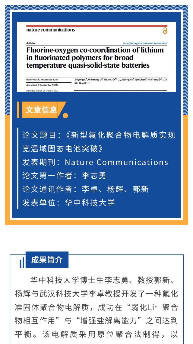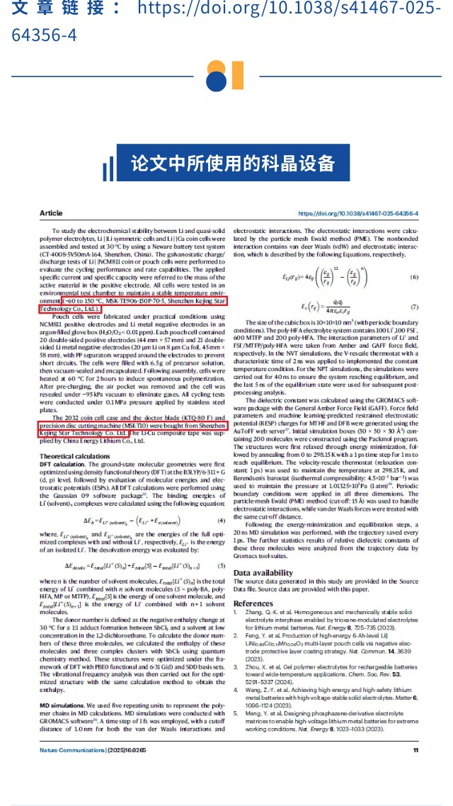 • 华中科技大学李志勇《Nature Communications》:创新的氟-氧共配位设计,突破固态电池超宽温域极限,深圳科晶电池设备助力科研