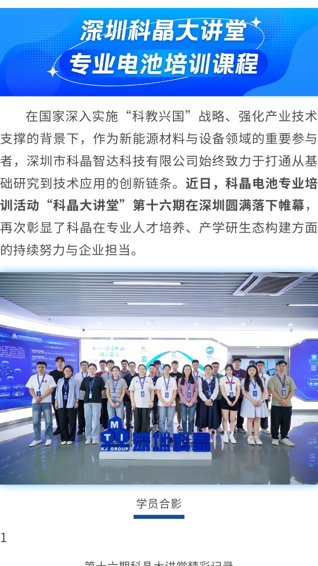 • 深圳科晶第十六期电池培训圆满收官:以专业培训夯实创新根基,以产学研融合共筑电池未来