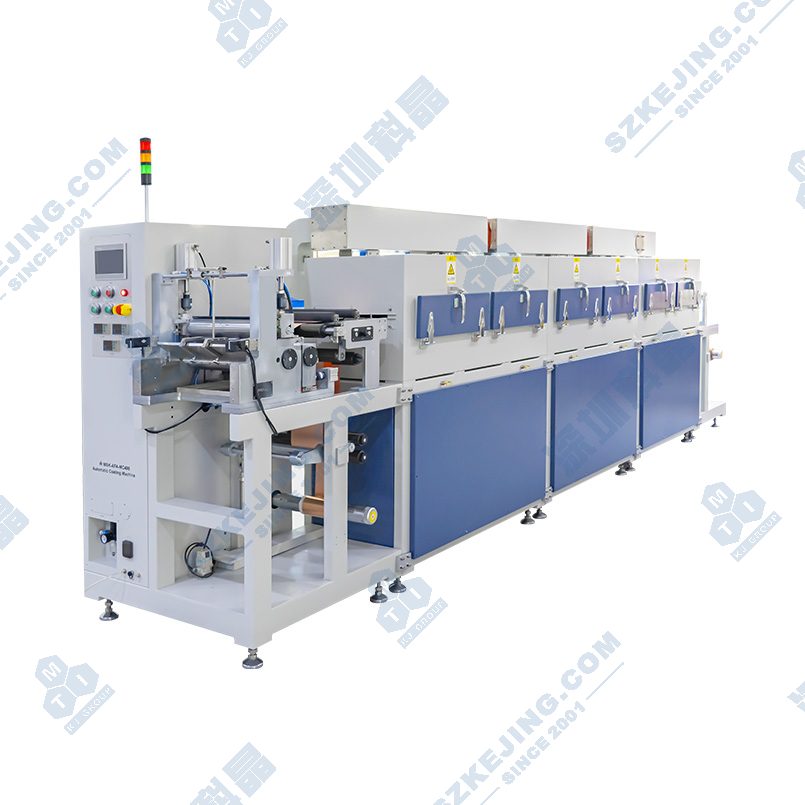 应用范围:MSK-AFA-400型多功能涂布机,卷对卷方式,连续涂布和间歇涂布,幅宽400mm,涂布宽度50-360mm,机头模块化结构,可选配挤压涂布、转移涂布、刮刀涂布、微凹版涂布、挤压+转移涂布,挤压+刮刀涂布,挤压+微凹版涂布,转移+微凹版涂布,刮刀+微凹版涂布,挤压+转移+微凹版涂布,挤压+刮刀+微凹版涂布,多功能涂布时通过改变基材穿带方案切换涂布功能,可选配挤压涂布模具, 150℃热风烘箱,放卷纠偏+收卷纠偏功能,放卷张力+收卷张力两段张力控制,可选配标准干燥箱及弧形干燥箱长度(1米、1.5米、2米)及数量(1节、2节、3节等),供料装置,NMP监测、箱压监测、NMP处理等。