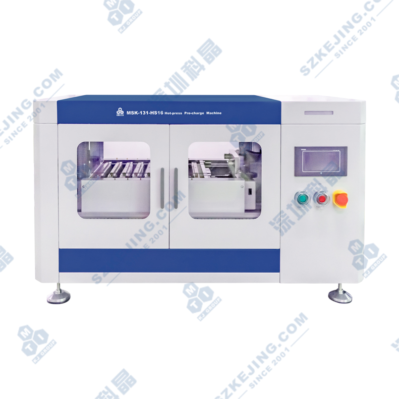 应用范围:本设备为16通道单端出极耳电池用热压化成机,设备采用卧式结构,共有8层压板,每层可用于2个电池,共16个通道;主要用于软包锂离子电池在热压状态下进行化成,能够代替现有电池化成工艺的烘烤整形工艺,同时缩短化成时间,缩减电池制作周期,减少人工,电池在抽气封口后表面更加平整,外观更漂亮,同时完成电池的化成和热压整形。