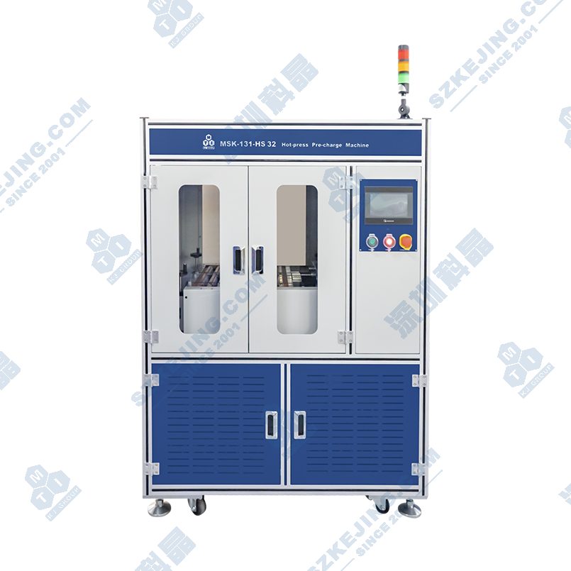 应用范围:本设备为32 通道单端出极耳电池用热压化成机,设备采用卧式结构,共1 组加压结构,每组16 层压板,每层可用于2 个电池,共32 个通道;主要用于软包锂离子电池在热压状态下进行化成,能够代替现有电池化成工艺的烘烤整形工艺,同时缩短化成时间,缩减电池制作周期,减少人工,电池在抽气封口后表面更加平整,外观更漂亮,同时完成电池的化成和热压整形。