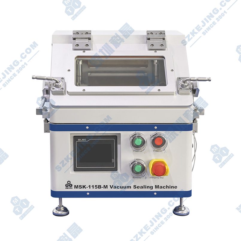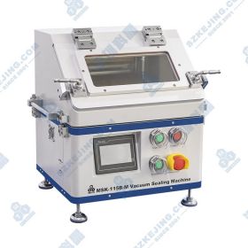 应用范围:MSK-115B-M型真空封口机,兼容软包电池和固态电池的预封和终封功能。人工上料,手动装夹,自动完成抽真空、排液、封口。设备包含夹具、封头、针刺、排液、微正压洗气等单元。有效封口长度Max.190mm,兼容最大电池尺寸L190*W190*H12mm(双坑电池),真空度好于-95Kpa。标配6mm宽硬封,其他规格尺寸可定制。